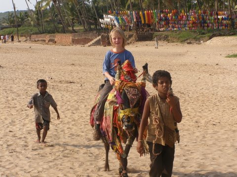 Darcy riding a cow